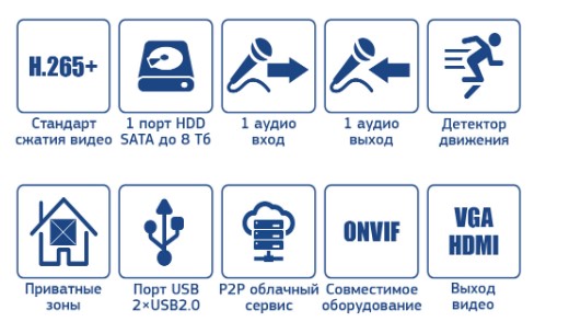 Запись 8Мп (4K) до 12 IP камер, отображение 12, воспроизведение 1