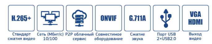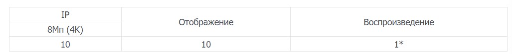Запись 8Мп (4K) до 10 IP камер, отображение 10, воспроизведение 1