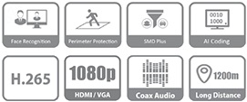 4-канальный Penta-brid 5M-N / 1080p Smart 1U 1HDD Цифровой видеорегистратор WizSense. Двухпотоковое сжатие видео H.265 + / H.265. Поддерживает полноканальное AI-кодирование. Поддерживает видеовходы HDCVI / AHD / TVI / CVBS / IP. Макс.6 каналов входов IP-камеры, каждый канал до 6MP. Максимальная входящая полоса пропускания 32 Мбит / с. До 1-канального видеопотока (аналоговый канал) Защита периметра. До 4-х канального видеопотока (аналоговый канал) SMD Plus. До 1-канального видеопотока (аналоговый канал) Распознавание человеческого лица. Функции IoT и POS.
