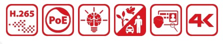Видеоаналитика: люди/ТС    Видеоаналитика для распознавания людей и ТС в целях снижения числа ложных тревог: до 4 каналов, 2 Мп (H.264/H.265); Всего до 12 правил