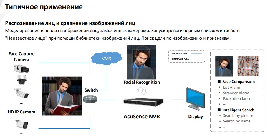 Производительность детекции лиц и аналитики    1 канал, захват изображений лиц человека (HD IP-камера, до 8 Мп, H.264/H.265)