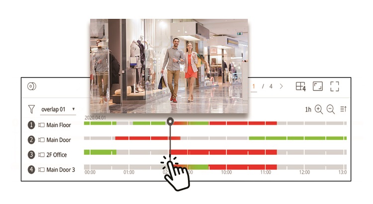 При управлении несколькими каналами XRN-6410DB4 значительно повышает эффективность поиска, позволяя пользователям просматривать изображения и видео, просто наведя курсор мыши на шкалу времени.Более того, пользователи могут настраивать события и тревогу для всех каналов на одной странице.