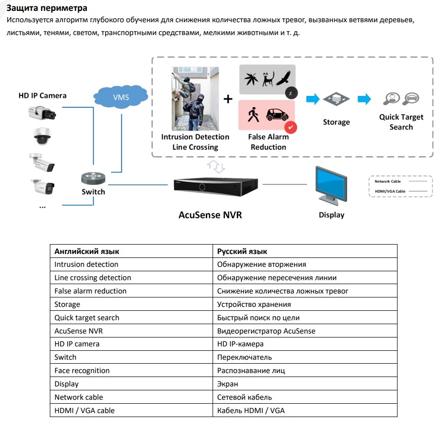 Снижение числа ложных срабатываний    Видеоаналитика для распознавания людей и ТС в целях снижения числа ложных тревог: до 4 каналов, 2 Мп (H.264 / H.265); всего до 12 правил