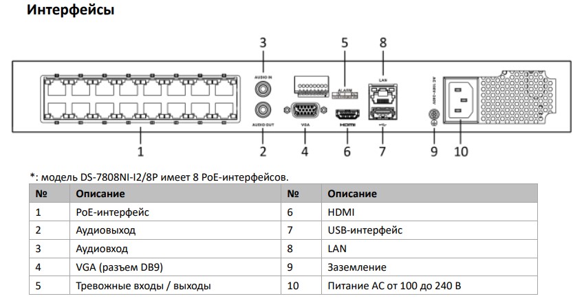 - Декодирующая способность до 2 каналов 12 Мп/16 каналов 1080p