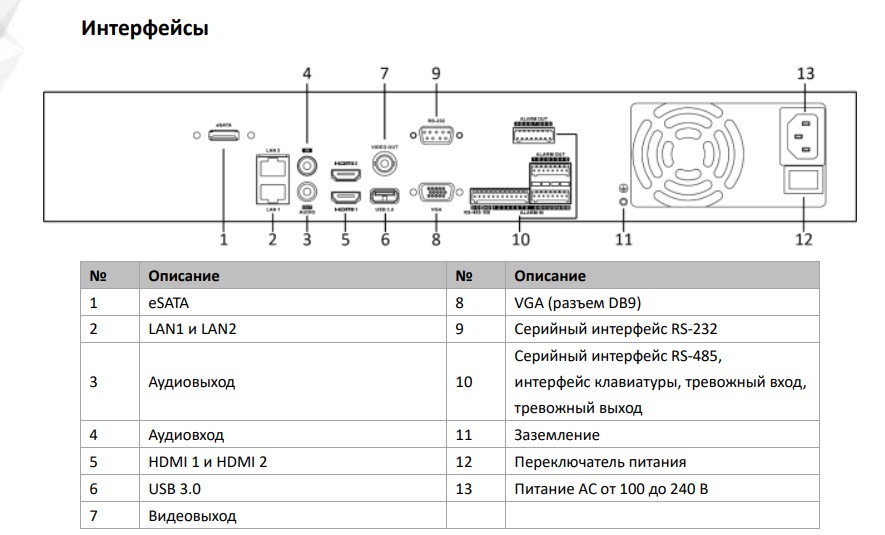 - Декодирующая способность до 1 канала 32 Мп/ 2 каналов 12 Мп/16 каналов 1080p