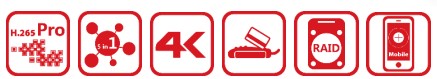 • Видеосжатие H.265 Pro+ / H.265 Pro / H.265 / H.264+ / H.264.