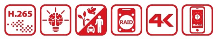 - Стандарт сжатия H.265+: экономия места на диске, снижение затрат на 75 %