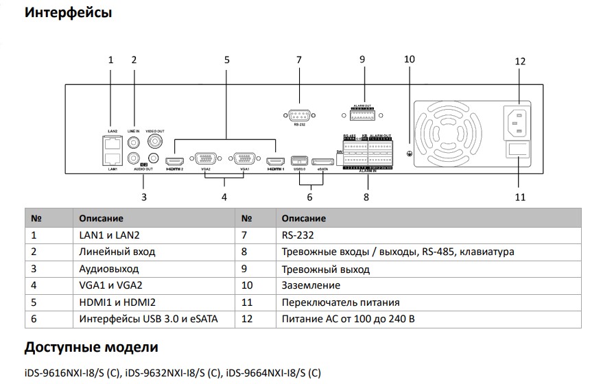 - Может быть подключено до 16/32 /64 каналов IP-камер