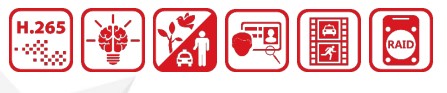 Снижение числа ложных срабатываний Видеоаналитика для распознавания людей и ТС в целях снижения количества ложных тревог: до 16 каналов, 4 Мп (HD IP-камера, до 8 Мп, H.264/H.265)