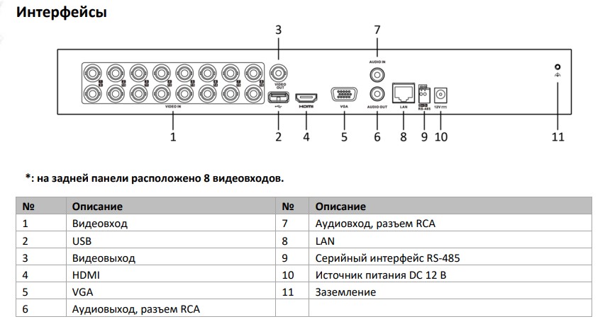 Видеовходы HDTVI / AHD / CVI / CVBS / IP