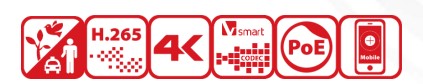 • Стандарт сжатия H.265+: экономия места на диске, снижение затрат на 75 %