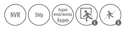 Цифровой видеорегистратор  режим работы: 5 IP (5Mp).  Всего видеовыходов: 1 (HDMI), HDMI 1920×1080, 1440x900,1366x768,1280x800,1280x720,1024x768. Поддерживаемые видеокодеки: S+265/H.265/H.264. Поддерживаемые аудиокодеки: G.711A / G.711U / ADPCM_D / AAC_LC.