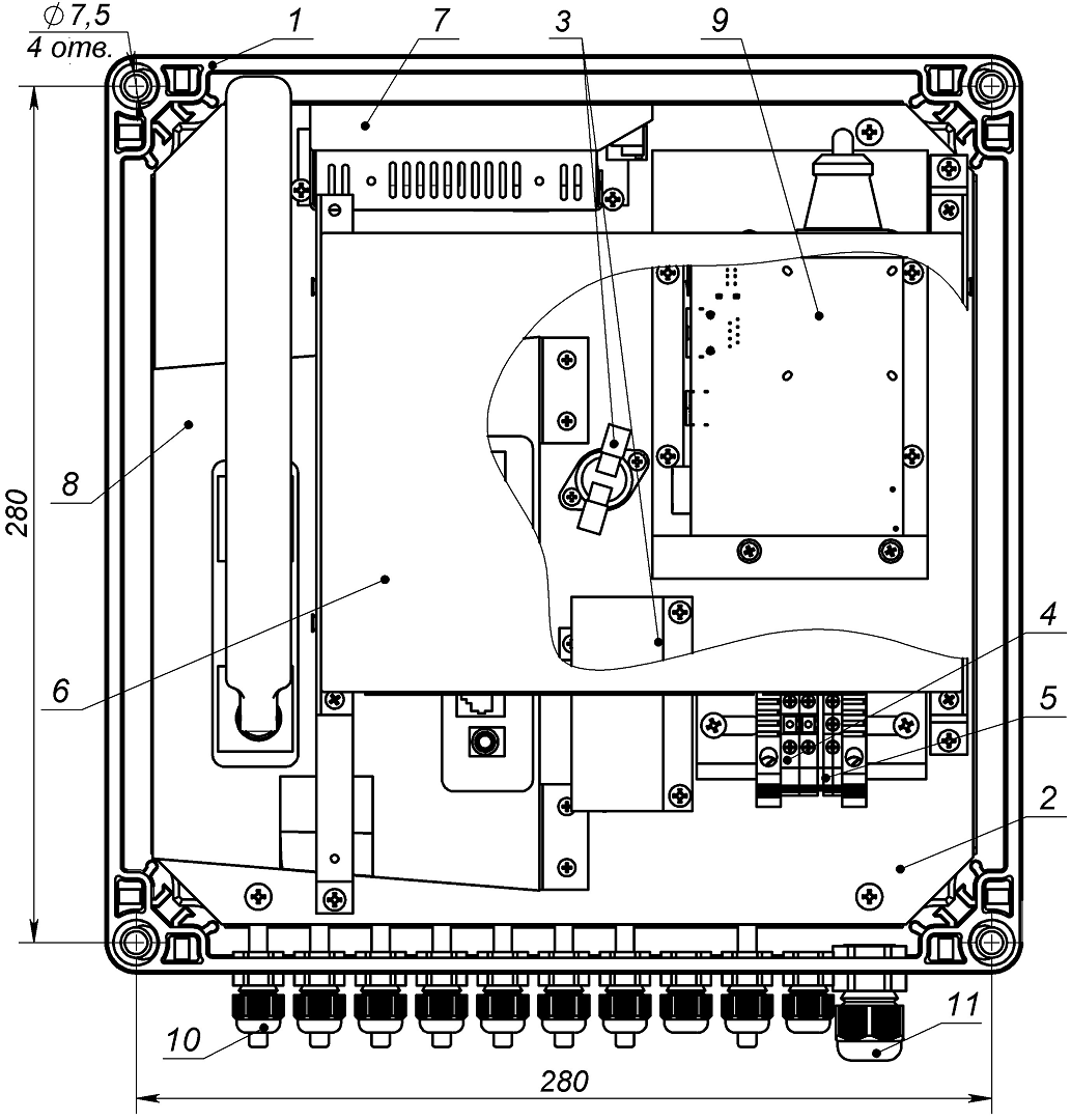 | 11. Гермоввод PGA11 - 10 Ø кабеля 10 ÷ 6 мм | 1шт. |