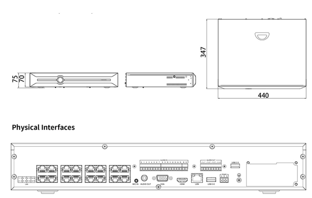 • Поддержка просмотра в реальном времени, хранения и воспроизведения подключенной камеры с разрешением до 12 Мп